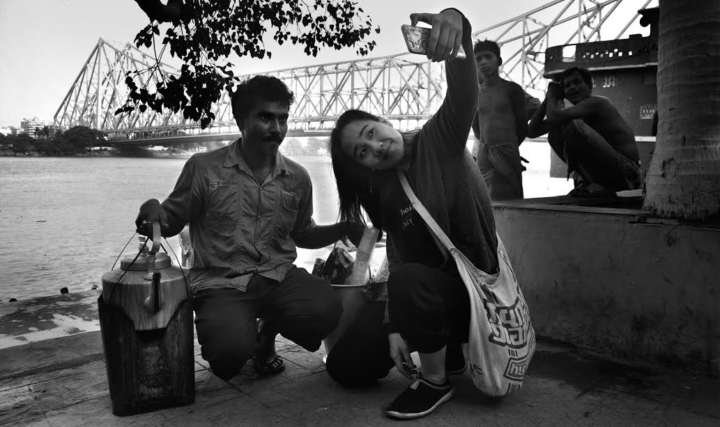 From the innocent frame of a foreign visitor taking a selfie with a tea seller in one of the ghats in the backdrop of the bridge to a solitary boat floating in the Hooghly waters under the mellow afternoon shadow of the imposing cantilevers of the bridge, Chowdhury captures the impact of the bridge on life and its seamless beauty in daily activities.