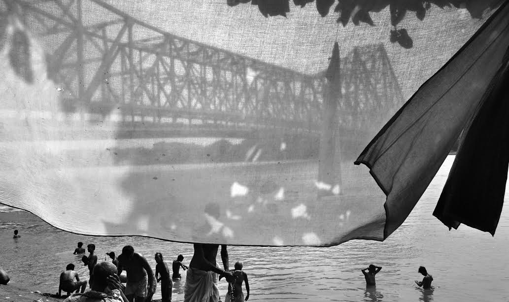 So in another image it is just the impression of the bridge seen through the filter of a piece of cloth being dried by one of the bathers in the ghats.