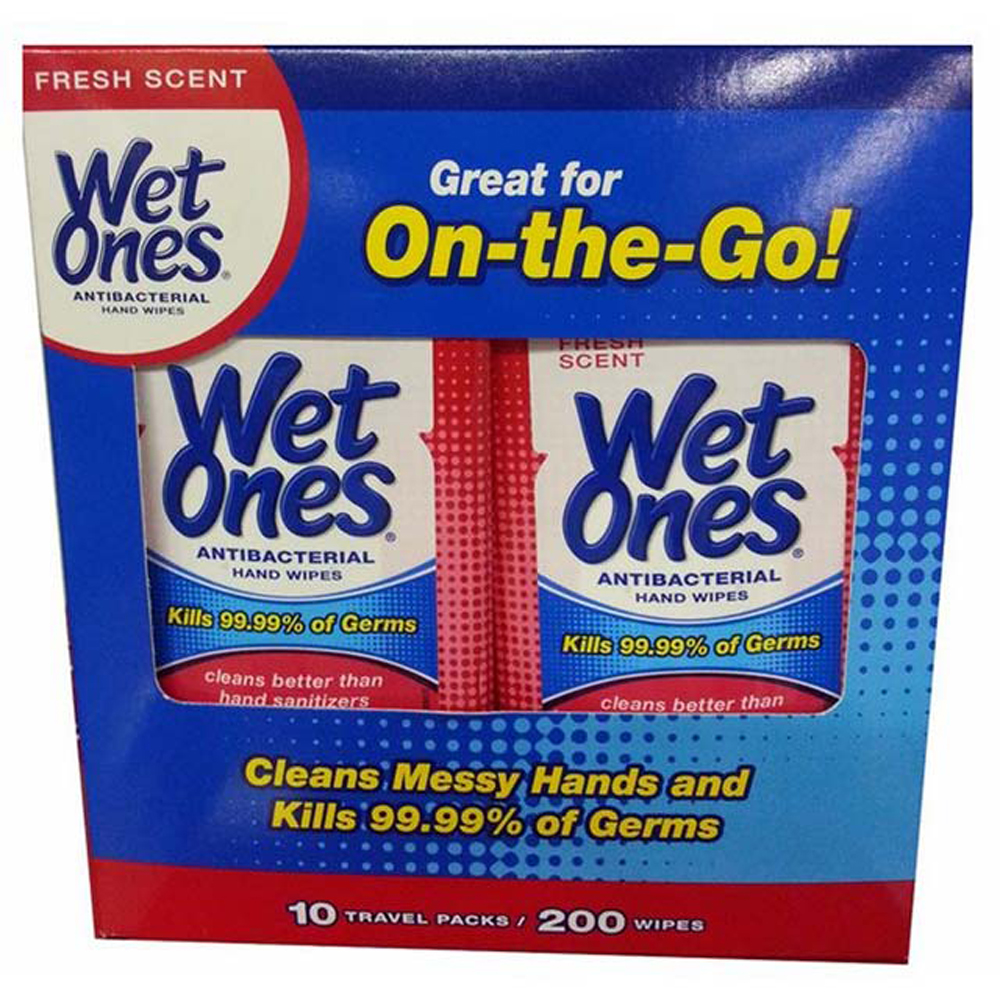 Antibacterial wipes will keep your hands clean and prevent the spread of germs. A small pack should fit in your pocket.