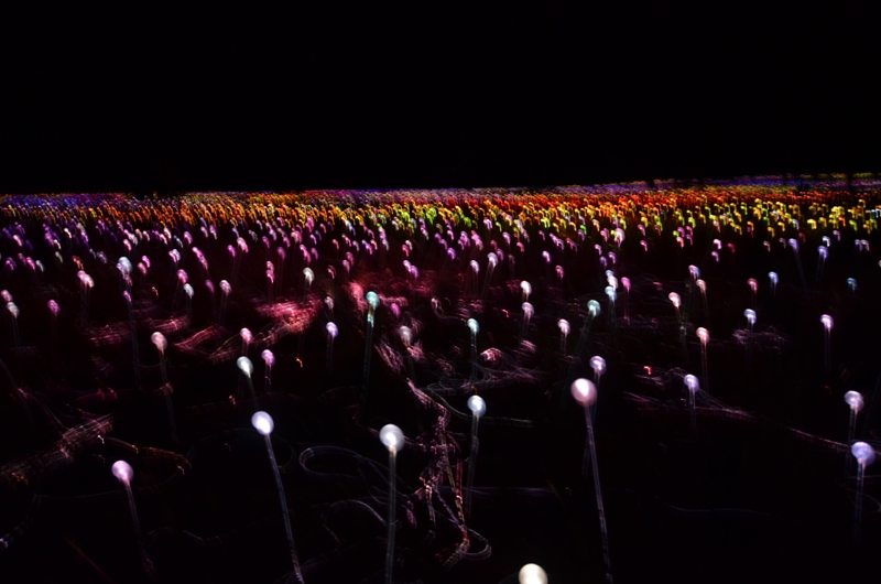 The major lure for my third trip was the Field of Light. As the name suggests it’s an extraordinary illumination extravaganza that spreads across the field, edging the rock. As darkness creeps in, over 50000 solar powered and slender stems crowned with radiant frosted-glass spheres illuminates 49,000 square metres of the desert land. Designed by British artist Bruce Munro, this massive artwork comprise of 300000 individual components, which includes 380 km of optical fibre cable and 36 solar portable solar panels to interface with 144 projectors. It took over 2000 hours to design the system in UK and further 3900 hours to recreate it on site. Since opening in April 2016 this colourful showbiz has certainly turned as the biggest crowd puller to Uluru.