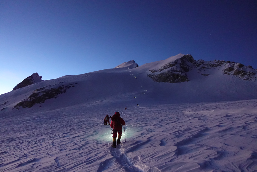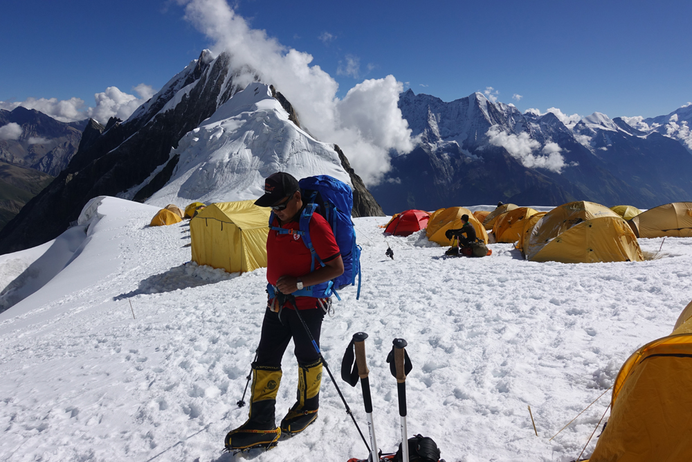 On September 24, the team launched itself for the final summit. Climbing from Camp 1 to Camp 2; and, from Camp 2 to Camp 3; the team reached Camp 4 on Sept 24, 2017. The trek from Camp 3 to Camp 4 was the longest and the most challenging one with steep climbs and blue ice.
