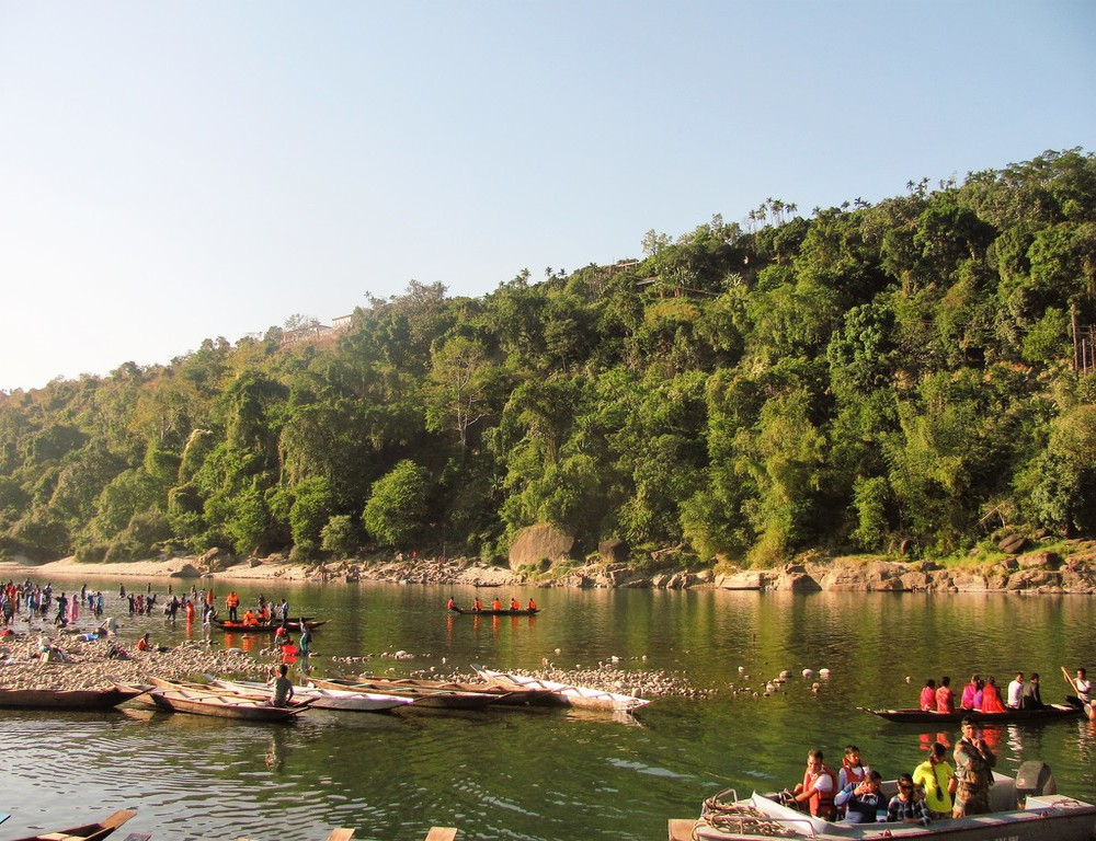 The river, which itself is the border between the two South Asian countries, serves for boating ride on a clean blue water. The river is in Meghalaya's Dawki town, trade hub between India and Bangladesh.