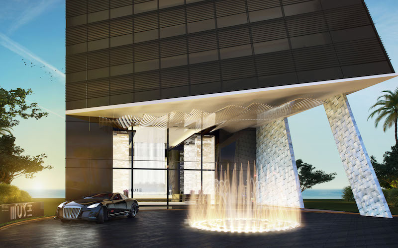 Overlooking an exclusive oceanfront, Muse features an unmarred lower-level appearance with a parking garage folded into the building itself. With parking integrated into the tower’s progressive design, residents enter directly into the lobby upon arrival.
