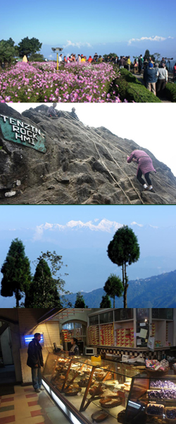 The hub of activity in Darjeeling town is the Chowrasta and Mall. Chowrasta is a wide promenade atop a ridge lined with shops and restaurants where tourists and locals crowd, shop, hang around, enjoy the sun, or surrender to the nearby lip-smacking bakery delights of Glenary's, one of the oldest confectioners in Darjeeling.