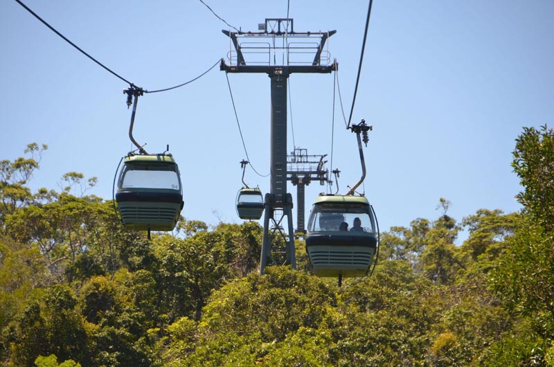 The vastness and beauty of the rainforest is best enjoyed while gliding meters above the pristine canopy in one of the glass-covered gondolas of Skyrail, a safe and reliable 7.5 km long cableway system which hikes from Smithfield, just 15 minutes away from Cairns to Kuranda. (www.skyrail.com.au).