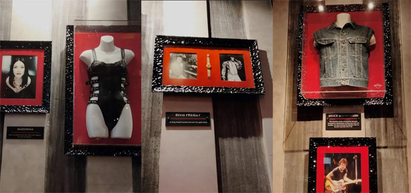 There are others…it is like a gallery filled with memorabilia and they are not replicas but original ones. The Hard Rock Café has the largest memorabilia collection in the world including autographed guitars, costumes from world tours and rare photographs.