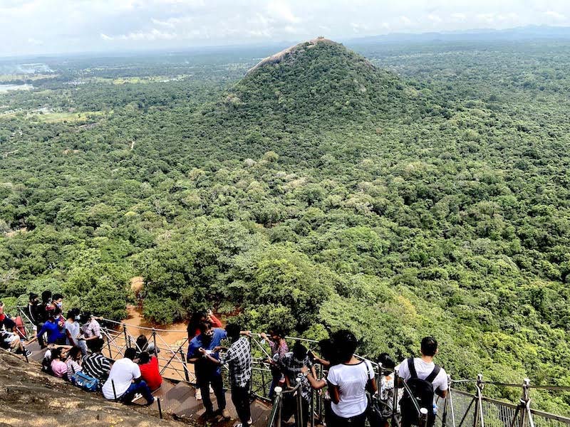 It is a Fortress in the Sky. On the summit are the remains of the Royal Palace. Halfway during the trek, you find a small plateau where the King had built a gateway in the form of an enormous lion. The name of this place is derived from this structure — Sīnhāgiri, the Lion Rock.
