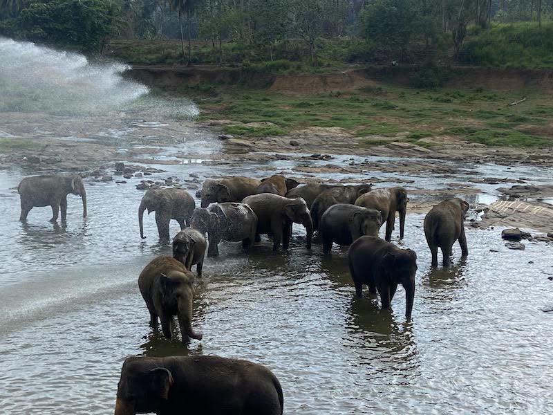 But to watch the Mahouts leading the elephants to Ma Oya river for bathing at certain hours of the day nevertheless offers you an opportunity to see a larger number of elephants together in a somewhat natural setting.