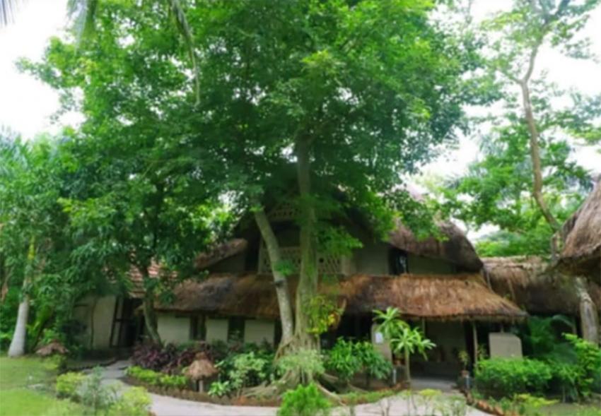 How prettily it sits beneath the shade of the large Banyan tree. It is a picture- perfect sight to behold… a scene straight out of rural Bengal… a two-storied mud hut with thatched roof nestling amidst lush greenery.