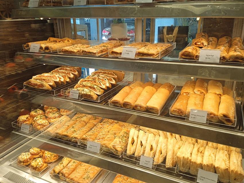 The smart display counters are stacked with cookies, cakes, pastries, breads and a large variety of savouries.
