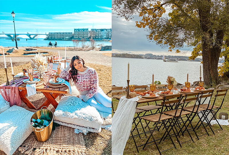 Picnic & Peonies is Alexandria's premier picnic company, where picnickers can revel in photogenic luxury setups with the option of adding elevated cuisine from Hummingbird, the restaurant on the waterfront in Hotel Indigo (which offers its own incredible outdoor patio dining looking out over the famous Potomac River). The experience offers low-style picnic seating or regular table seating - for a gorgeous pop-up tablescape. Or forget the fold-up chairs, beach towels and basic deli sandwiches. Book your luxury beach picnic in Virginia Beach with The VB Picnic Co. and Longboard Charcuterie offering pouf and rattan seating, luxurious linens, trendy tablescapes and gorgeous boards of finger foods for your seaside celebrations.