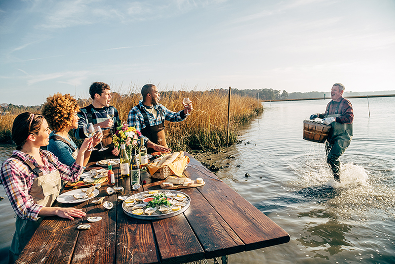 Or take a trip to an oyster farm and dine on oysters pulled right from the water only minutes before. Pleasure House Oyster Farm’s Chef Table Tours will even loan you waders so you can stand directly in the water at your table. Merroir, the on-site restaurant for Rappahannock Oyster Company, is adjacent to the actual farming operation, so you can walk out on the dock and learn some of the landside aspects of oyster farming.