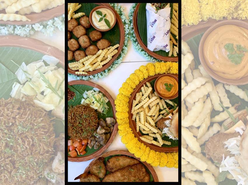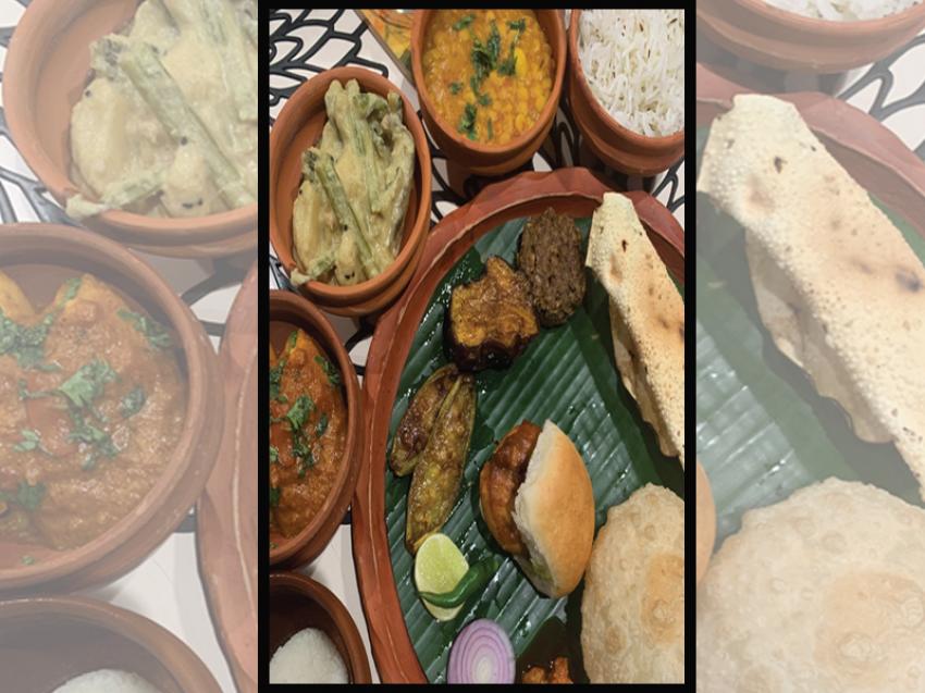 On the menu: Mochar chop with kasundi mayo, nachos and ghoogni chaat; Paneer kathi pizza; Miso chicken kebab Grilled togarashi bhetki; Chicken kathi pizza; Green moong, cholar daal and edamame risotto; broccoli and eggplant tempura and aloo bhaja; Sweet potato gnocchi in posto gravy, panchphoron vegetable stew; tsh trio daal; Doi Bhetki; Kosha Mangsho,; Mutton Chaap; Shorshe posto chingri with accompaniments like Kalonji gobhindobhog rice, Kolmi saag and onion kulcha with garlic chutney, Daal puri, pappad and an assortment of chutneys (tomato and khejur, raw papaya, red pumpkin, bengal apple, chilli pineapple)