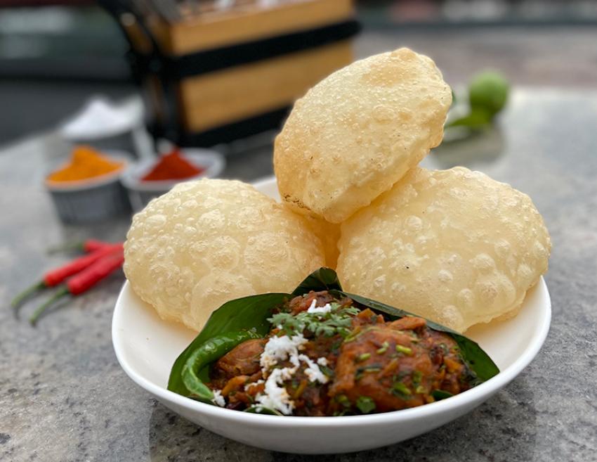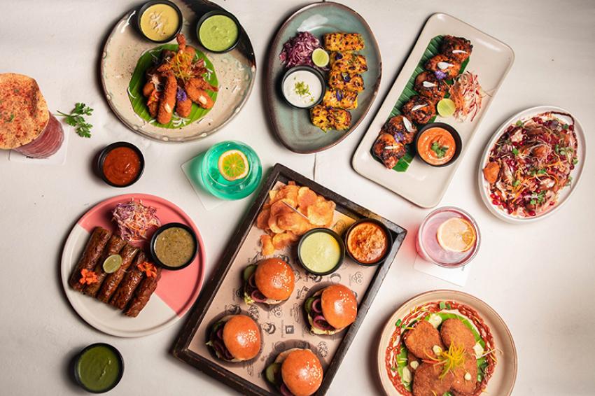 On the menu: Inspired by Kolkata’s popular street-side snack, the Moong and Jowar Pakoda Chaat is topped with pomegranate and raw mango chutney, rum infused tamarind chutney and sev; Mochar Seekh Kebab, banana flower and sweet potato seekh, drizzled with a spicy red chilli sauce, served with raw banana peel chutney and garlic cabbage slaw; Murgir Cutlet, Bengali-style minced chicken cutlet, with pickled chilli, pineapple and khejur chutney; Radhuni Murgi Tikka, chicken marinated in our house-made radhuni masala and whipped yoghurt with apple and tomato chutney; Kosha Mangsho sliders, pulled kosha mangsho (mutton) in milk buns with pickled cucumber; served with house-made potato chips and green chilli and mint mayo; Malai Chingri Fuluri, marinated in malai curry; panko crusted and deep-fried; served with gondhoraj lebu mayo and raw papaya chutney; K &P Maach, kasundi and panch phoron marinated fish, tandoor grilled and served with a sour cream, mint chutney and purple cabbage slaw