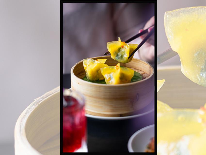 On the menu: Spicy Chicken Dumpling, Crunchy Iceberg Dumpling, Asparagus Water Chestnut Dumpling, Jhondori Fish, Seafood Noodles, Singapore Fried Rice, Assorted Macaroons