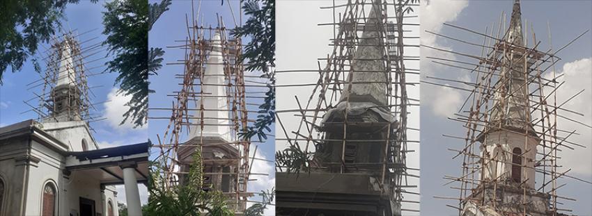 A framework of teak supports the central portion of the Church while the walls are made of brick and lime mortar.
