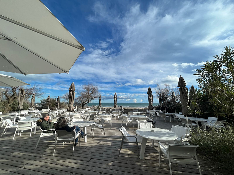 There are some luxurious beach properties too for the well heeled travellers. I spent an afternoon in the lounge of one of those- Hôtel Spa Plage Palace on Palavas-les-Flots beach. It is a property with two floors of immaculate white cubes and an elaborate open lounge with restaurants and cocktail bar overlooking the Mediterranean sea.