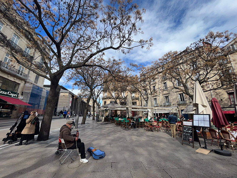 A Montpellier square buzzing with diners on a weekend. Image by Sujoy Dhar