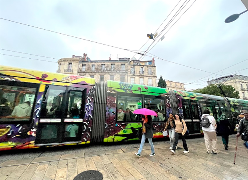 "Embark on a design and haute couture journey!" says Montpellier Tourism about their trams.