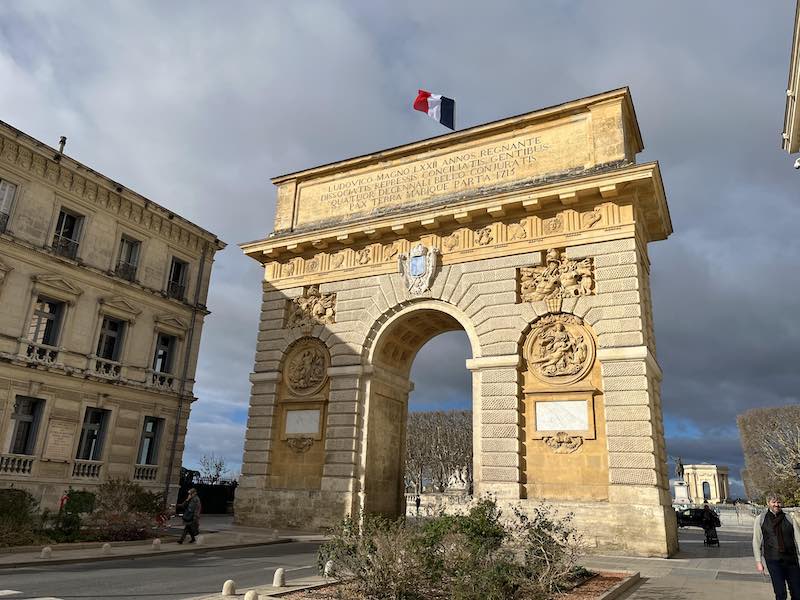 Montepllier has its very own Arc De Triomphe like Paris and it is a centerpiece of the iconic city gateway that is Porte du Peyrou. We passed through it into a warren of beautiful buildings on both sides of the street in the old town.