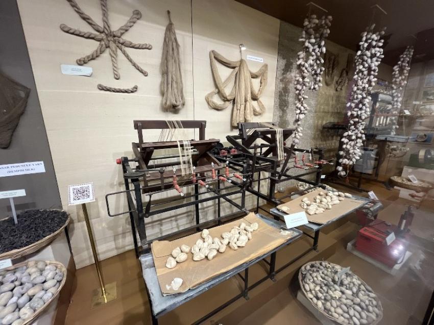 The Pre-Weaving Techniques Gallery reveals the unseen magic of textiles, lining its walls with cocoons, dyed fibers and samples of mulberry, eri, tassar and cotton that culminate in masterpieces such as the Gita Govinda saree, displayed alongside pictorial depictions of the complex tying and dyeing processes.