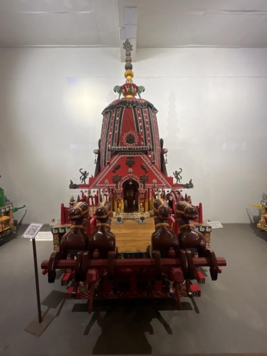 A vivid “tribal village” awaits in the Tribal Crafts Gallery, with ornaments, tools, attire and household items that reflect the lives and rituals of Odisha’s diverse ethnic communities. The spiritual heart of the museum, however, lies in the Crafts of Shree Jagannatha Culture Gallery, where ritual clothing, brass and bell-metal items, sacred earthenware, rare Pattapaintings and costumes of Mahari and Gotipua dancers recreate the devotional universe surrounding the holy Trinity.