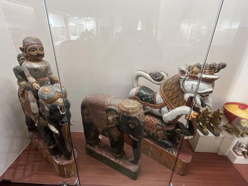 From there, the Traditional Painting Gallery bursts into colour, showcasing everything from ancient cave murals to the refined Pattachitra and Oshakothi styles, with palm-leaf manuscripts, wooden masks, dowry chests and vibrant Jatri Pattis adding layers of cultural memory.