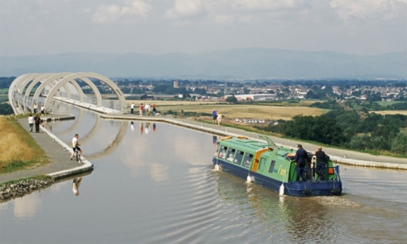 The Falkirk Wheel is the world’s only rotating boatlift, which is used to connect the Forth & Clyde and Union canals in central Scotland.