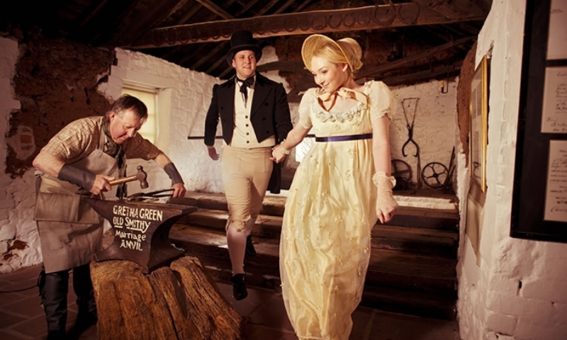 The historic Gretna Green Famous Blacksmiths Shop draws you in to its romantic and often dramatic past. Here the Story of Gretna Green unfolds. Why was the romantic lure of Gretna Green so irresistible for young couples of yesteryear and so popular with brides and grooms today?
