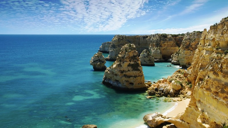 The presence of the Atlantic Ocean and the climate, with very sunny summers and mild winters make Portugal a holiday destination renowned for sun and sea and walks on the beach throughout the year. In fact, the Portuguese coast is almost a single beach extending more than 850 km and offering a diversity of landscapes that allows you to choose between the rougher and cooler sea in the north and the warm, placid waters of the south. There are large stretches of golden sand for those who love an expansive horizon, and also little coves with orange tinted rocks and cliffs. Of the wide variety of beaches, more than 300 have first rate conditions and earn the accolade of Blue Flag beaches. Nearly 200 are accessible beaches.
