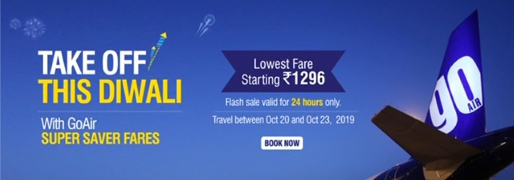 New Delhi: Airline GoAir has announced pre-Diwali 24-hour deal wherein customers can book tickets for as low as Rs 1296 onwards (inclusive of taxes) for international and domestic routes.