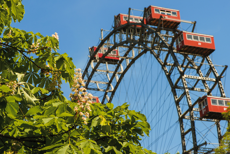 The cars of the Giant Wheel look charmingly like luxury railway coaches. Held high aloft, they turn unhurriedly and dreamily round and round suspending the usual hustle and bustle of busy city life, giving visitors a fabulous view of Vienna. Its history is dotted with some extremely amazing and amusing facts however. It may weigh 430 tons, but the Riesenrad can actually be operated by hand. Two English engineers Walter Basset and Harry Hitchins actually designed it to be manually operated in the event of a power outage, a reassuring thought for those who may be worried over that unlikely eventuality.