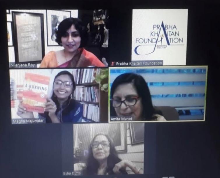 Indian-born novelist Megha Majumdar, who lives and works as an editor in New York city, was the guest at Kitaab by Prabha Khaitan Foundation last month. India Blooms correspondent Souvik Ghosh brings an excerpt of Megha's conversation with journalist-author Nilanjana Roy regarding her debut novel 'A Burning'