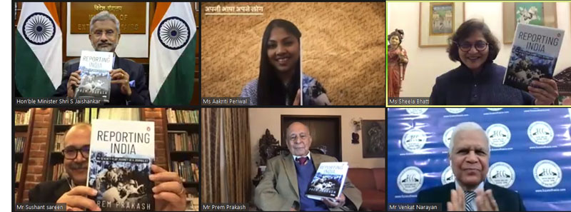 “Reporting India: My Seventy-Year Journey as a Journalist” was released by Jaishankar at Kitaab online book launch event organized by Prabha Khaitan Foundation (PFK) of Kolkata in association with Penguin India.