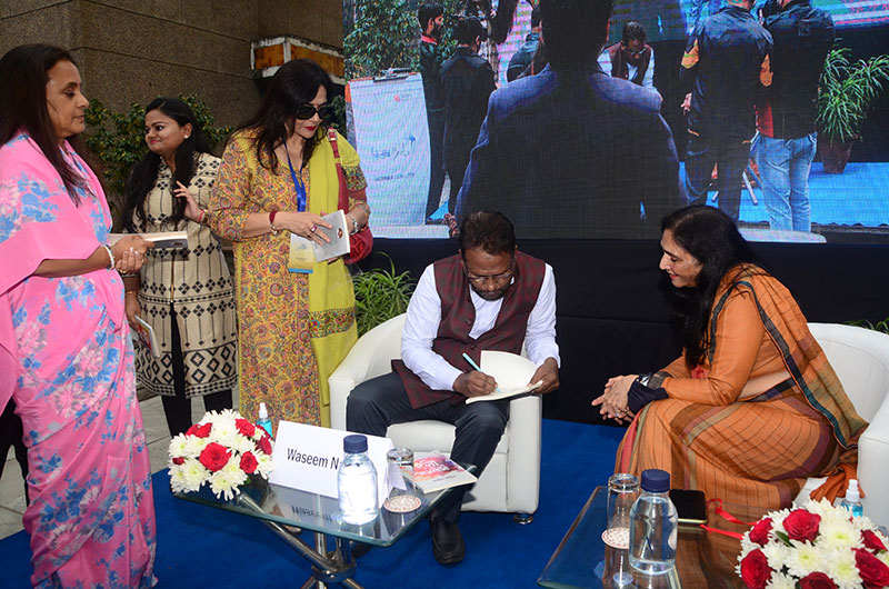 In the second session, the book 'Rangon ki Manmani’ by Waseem Nader, was inaugurated by Shazia Ilmi, Ehsaas Woman of Delhi, and the panellists were felicitated by Nidhi Garg, Ehsaas woman of Bhubaneswar. This captivating and charming session in Urdu began with the felicitation of Waseem Nader and conversationalist Abhinandan Pandey by Shazia Ilmi, Ehsaas Woman of Delhi. During the discussion, Waseem expressed his thoughts on what he considers about the strong Arabic influence on the Urdu language.