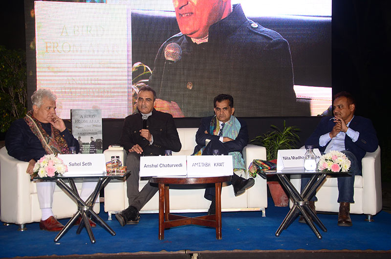 “A Bird From Afar”, a novel by Anshul Chaturvedi marked the third launch of the day. The session was inaugurated by Shinjini Kulkarni, Ehsaas Woman of Noida and Garima Mithal, Ehsaas Woman of Meerut, felicitating the panelists. It was a dazzling affair as Suhel Seth, Amitabh Kant, (CEO Niti Aayog), Neela Madhab Panda were present at the venue to congratulate Anshul for his phenomenal work. Neela Madhab expressed “It is the most incredible fictional book I have ever read”. Anshul read a few excerpts from his book for the audience. It discussed that the death of Subhash Chandra Bose overshadowed his life and people didn’t know much about the philosophy and beliefs he nurtured. This book unveils facets of his life and not death. Anshul mentioned that this novel is not a political book he had no pre-fixed mindset when he explored, he had no target audience to placate. He said “I have a thought process and it’s a story.” He has positioned the narrative of the story to point out that we don’t look at military thoughts with as much nuance as we should. Amitabh Kant congratulated Anshul for his new book and said those who fought for India must read the book. Neela Madhab Panda said it’s an incredible fictional history book. Anshul read a few excerpts from his book for the audience. The session concluded with Shinjini Kulkarni delivering the thank you vote to the audience and guests.