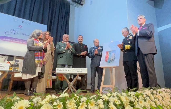 India's Most Fearless 3 was released by the Chief of the Army Staff General Manoj Pandey, Chief of the Naval Staff Admiral Radhakrishnan Hari Kumar and Chief of the Air Staff Air Chief Marshal Vivek Ram Chaudhari event in the presence of IGNCA’s Pratap Anand Jha, Ehsas Woman of Delhi Neelima Dalmia Adhar, the editor of the book Milee Ashwarya, and Anindita Chatterjee, executive trustee of the Prabha Khaitan Foundation.