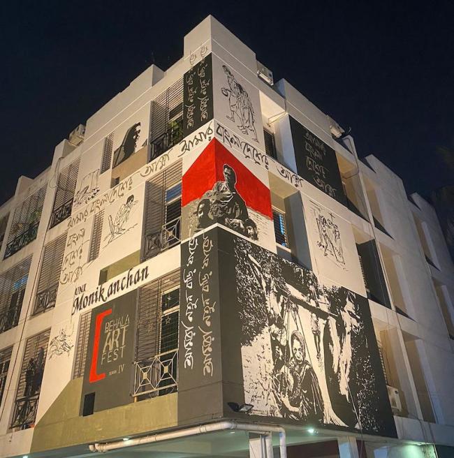 This year, the art festival is dedicated to renowned filmmakers Ritwik Ghatak (1925 – 1976) and Mrinal Sen (1923 – 2018); to celebrate Sen’s birth centenary year, the walls of one of the lanes have been entirely devoted to the man and his works.