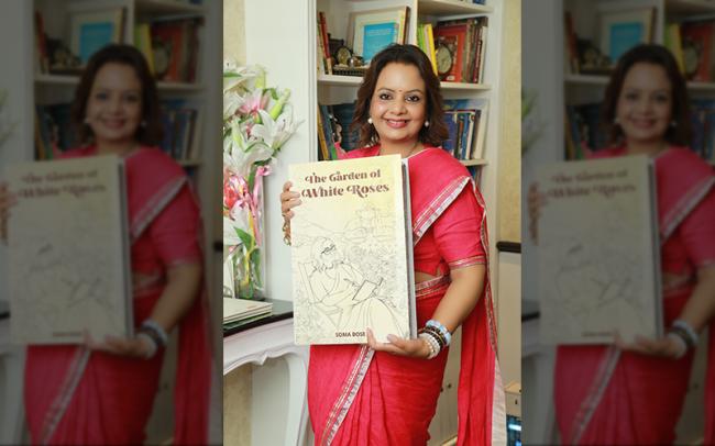 Award-winning author and visual storyteller Soma Bose unveiled the cover design of her much-anticipated third book, Garden of White Roses, at a city café in the presence of her team members and publisher.