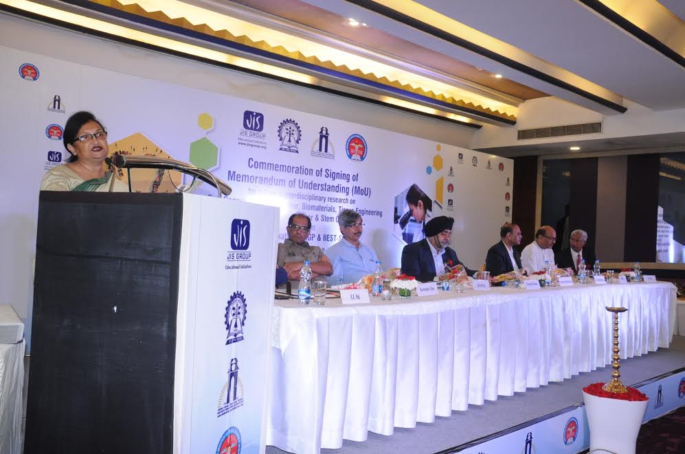 Kolkata, Oct 26 (NITN): In an attempt to fight against oral carcinoma and aid in development of Biomaterials based Oral Implants, Guru Nanak Institute of Dental Sciences and Research (GNIDSR) - an institute under the aegis of JIS Group Educational Initiatives, IIT-KGP and IIEST (Shibpur) signed a Memorandum of Understanding (MoU) in Kolkata on Monday which aimed to conduct interdisciplinary research in contemporary fields of oral healthcare for the first time in India.