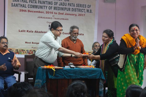 Kolkata, Dec 30 (NITN): The West Bengal State Akademi of Dance, Music and Visual Arts in association with Rabindra Bharati University and Lalit Kala Akademi on Thursday inaugurated a workshop on Santhal Pata painting of Jadu Pata series in Kolkata.