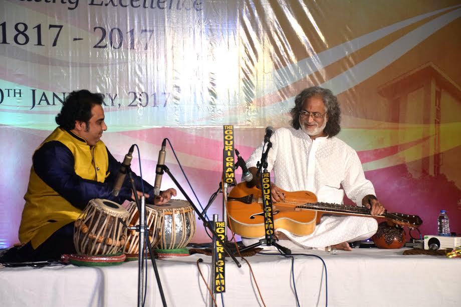 Pandit Vishwa Mohan Bhatt on his 'mohan veena' and Pandit Prodyut Mukherjee on his 'tabla' kept the august gathering spellbound with their rendering of Raga Charukeshi in 'vilambeet teentaal' and 'drut teentaal heightened by 'jhala'.