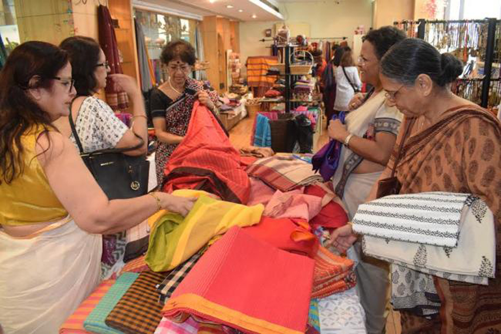 Products on sale included an array of cool crisp cottons from the looms of the master weavers, such as: Tangails, jamdanis and matkas from Fulia (West Bengal); Maheswaris and printed Chanderis in gossamer fine weaves; Silk by cotton ikats, mangalgiris and telias from Telangana and Andhra Pradesh; Colourful Chettinads from Chennai, designer saris and kurti pieces from Debapriya; Printed silk saris from Shubho; Exquisite kantha silk and tussar saris from Burdwan and Birbhum; Shibori saris and kurti pieces from MURA; hand-block printed mulmuls and kotas from Sanganer and Bagru; Kalamkari dupattas, saris and blouses from Angikam and Dwarka; silver and eco-friendly jewellery; printed yardage, blouse pieces, bags, batuas and accessories and many more, sourced from all over India.