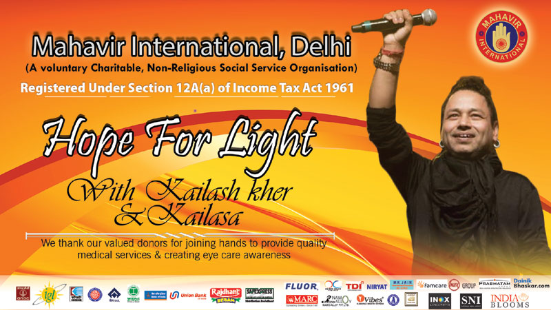 New Delhi, Mar 16 (NITN): Eminent singer Kailash Kher is all set to support ‘Hope for Light’, a flagship event of Mahavir International at the occasion of Eye Care Day.