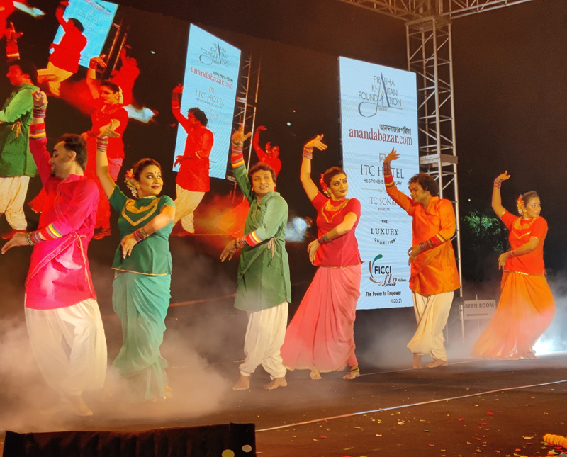Tejinder Singh, General Manager of ITC Sonar, and Shefali Rawat Agarwal, Chairperson Ficci YFlo felicitated the artistes with uttoriyos (a long scarf symbolising respect and honour).