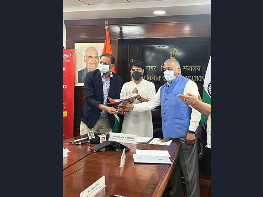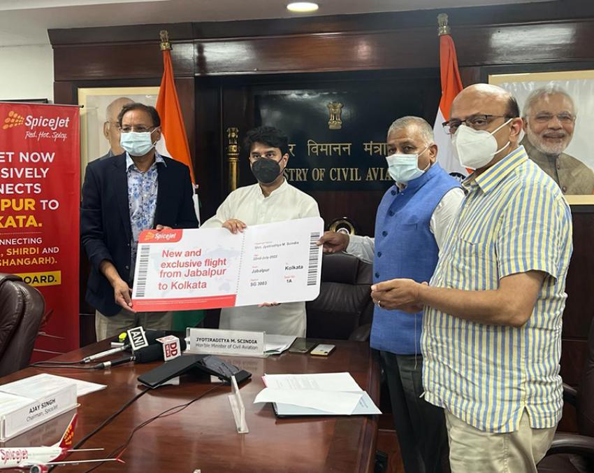 Union Minister of Civil Aviation, Jyotiraditya Scindia inaugurated SpiceJet’s Jabalpur-Kolkata inaugural flight virtually in the presence of Minister of State for Road Transport & Highways and Civil Aviation, General (Dr) VK Singh (Retd), Hon’ble Member of Parliament, Jabalpur, Rakesh Singh, Secretary, Ministry of Civil Aviation, Rajiv Bansal and CMD, SpiceJet, Ajay Singh.