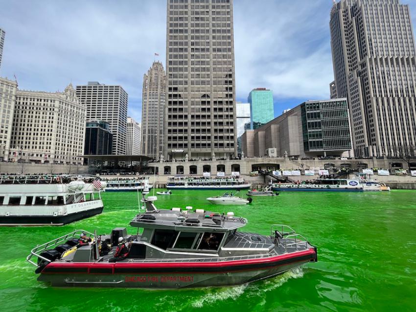 The plumbers union still holds the river-dyeing honors today, and their environmentally friendly dye formula remains a closely kept secret.