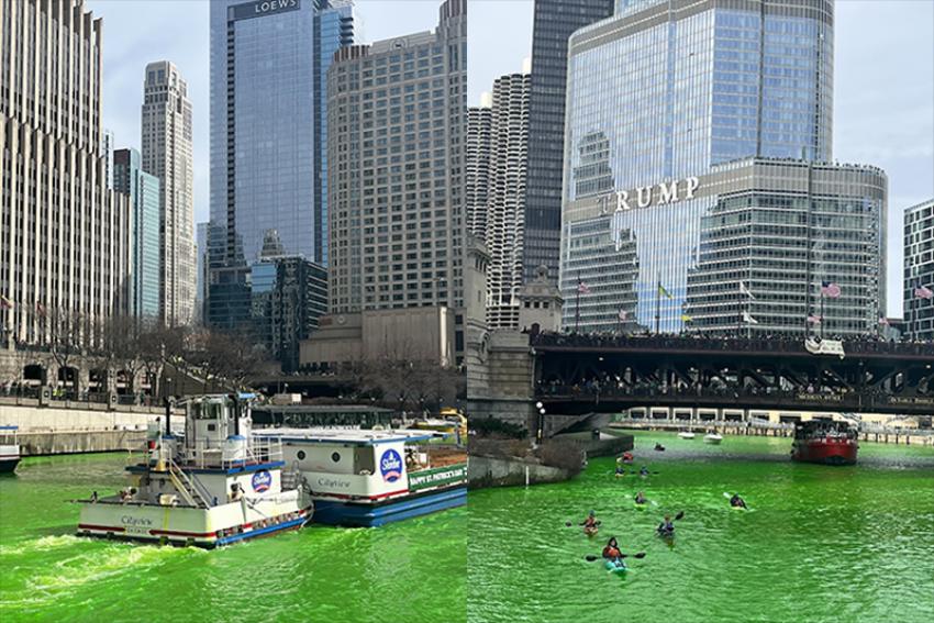 Throngs of revelers, comprising both locals and tourists, sporting the signature gears and cheering lustily, painted the windy city in the colour of St. Patrick's Day on Saturday as the Chicago River bled emerald green after the river dyeing, a traditionl since 1962.