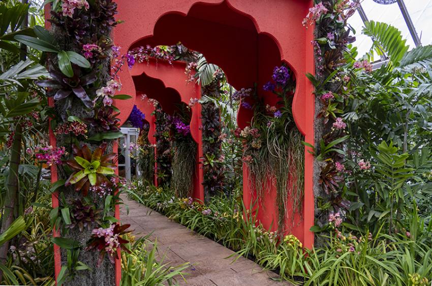 Opened on Feb 8, the Chicago Botanic Garden explores the beauty of India through the harmony of tradition and modern design during The Orchid Show: India Blooms.