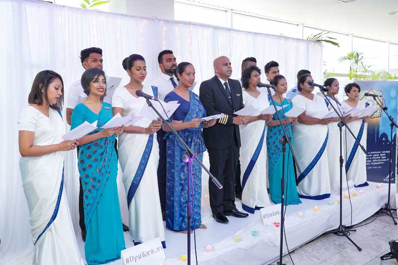 A choir comprising staff volunteers ranging from aircraft engineers, pilots, cabin crew, ground handling, security, aircraft interior services and corporate offices sang ‘Bhakthi Gee,’ traditional devotional songs, sung during Vesak.